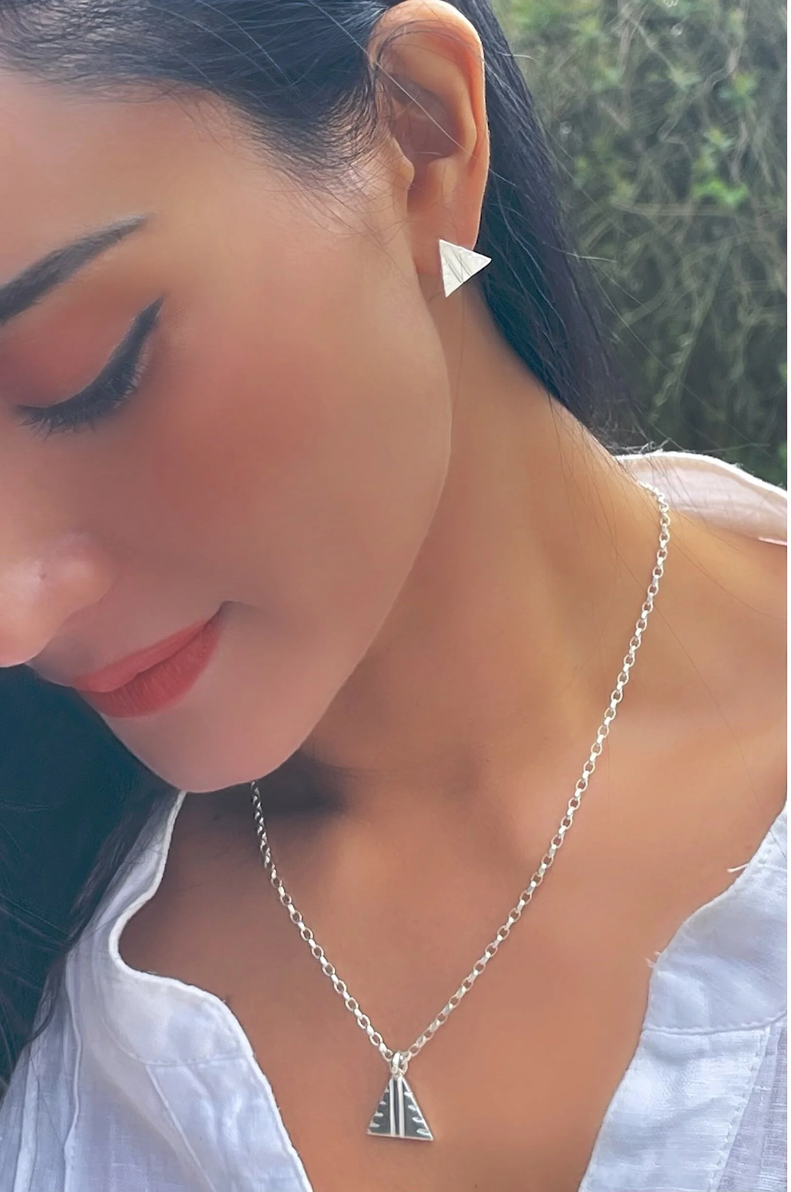 If you think about triangles they have three sides. The triangle shape is the strongest of shapes as any weight pressed on the triangle is distributed and supported equally by all three sides. The triangle therefore is a symbol of strength. When you want to feel particularly strong wear a triangle piece of jewellery to remind yourself how strong you are. I have created some pretty triangle jewellery in my portfolio, see the photograph above.